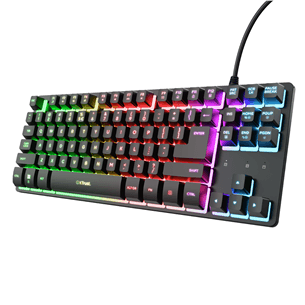 The Trust GXT 833 Thado TKL is a compact, high-performance gaming keyboard with an 80% layout and multicolour RGB lighting. Featuring 10-key anti-ghosting, dedicated media controls, and a durable metal top plate, it delivers precise performance and style in one.